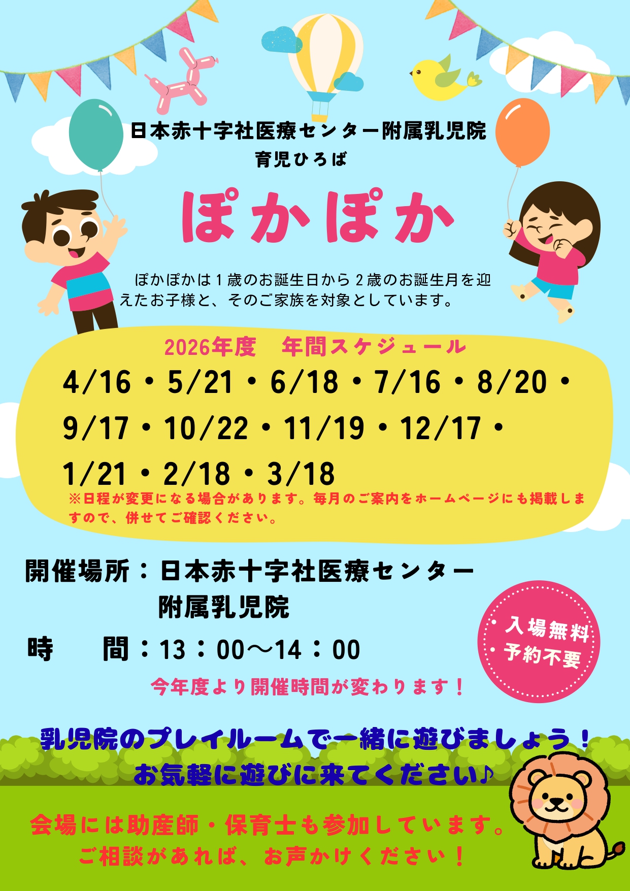 当センターの助産師や、附属乳児院の看護師・保育士・心理士・栄養士も参加しますので、お悩みがあればその場で